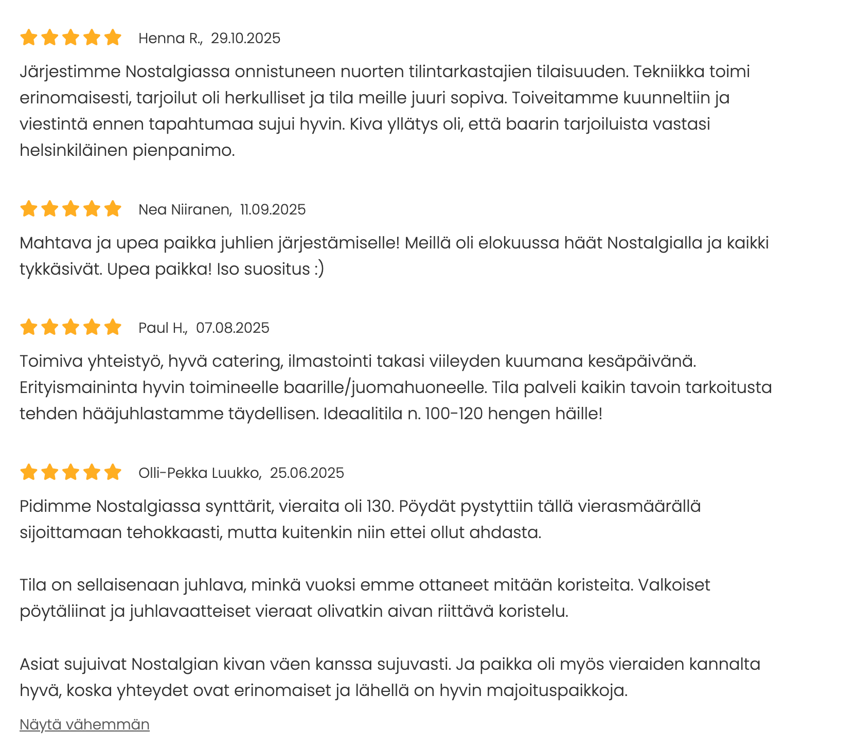 Katso mitä asiakkaat ovat Nostalgiasta sanoneet