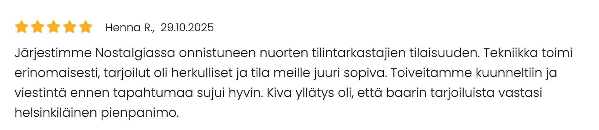 Juhlatila yrityksen henkilöstöjuhlille Helsingistä